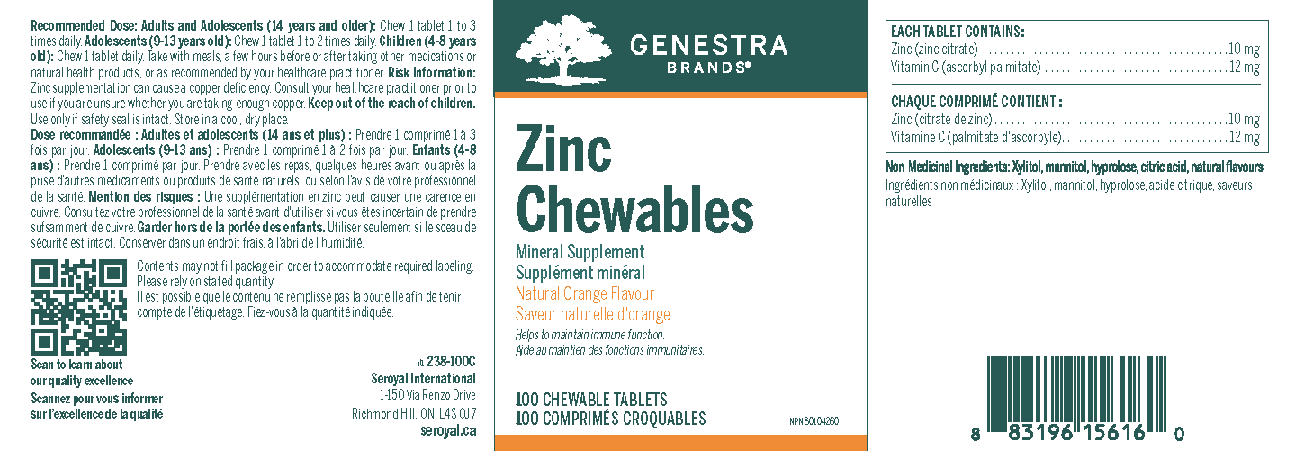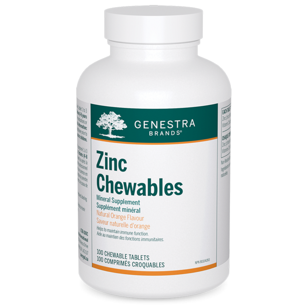 Zinc chewables feature 10 mg of elemental zinc as zinc citrate per tablet, and are suitable for ages 4 and up as a delicious option to help meet daily zinc requirements. Zinc is an important trace element in the body.1 It plays a key role in maintaining immune health by stimulating the production of immune cells, regulating natural killer cell activity and mediating cytokine production.1,2 Clinical research has demonstrated that daily supplementation with zinc helps to maintain immune function in adults and children.3,4 Zinc also has a long history of use in dermatological health.5 It helps to maintain immune function in the skin, while promoting collagen synthesis to help maintain skin structure.6 Additionally, zinc has a role in maintaining hair and nail health, and maintains bone health by regulating bone formation and resorption.5,7-9 Zinc chewables are delicious, naturally orange-flavoured chewable tablets ideal for anyone 4 years and older who have difficulty or dislike swallowing capsules.