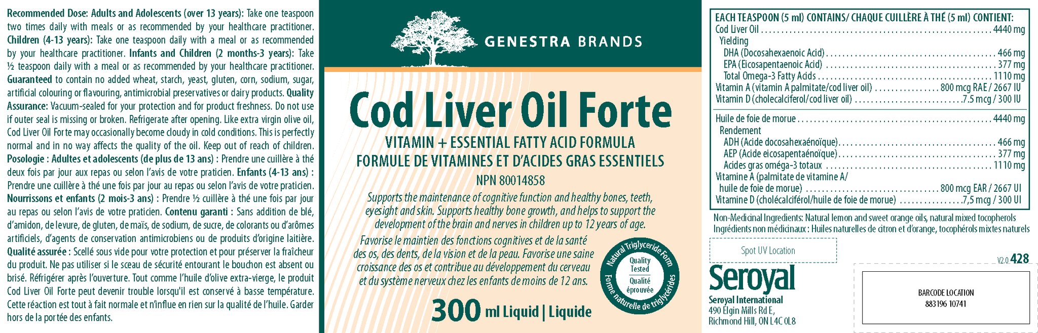 • Also includes 2667 IU of vitamin A and 300 IU of vitamin D per teaspoon