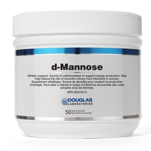 d-Mannose is a simple sugar found naturally in fruits such as cranberries and pineapples. It is absorbed slowly from the gastrointestinal tract and unlike many sugars, it is not converted into glycogen or stored in the liver. Much of the d-Mannose consumed is filtered by the kidneys and delivered to the bladder, where it is excreted in the urine. Daily supplementation with d-Mannose is a great alternative to drinking cranberry juice as cranberry juice frequently contains high levels of fructose and is not often standardized to d-Mannose concentrations.