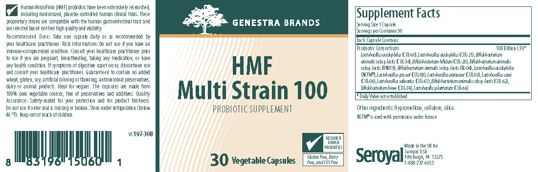 HMF Multi Strain 100 capsules offer 100 billion CFU from a combination of 14 probiotic strains. Included in this blend of proprietary, human-sourced probiotics are eight strains of Lactobacilli and six strains of Bifidobacteria to promote colonization in both the small and large intestines.1 These research-driven strains were selected based on their superior adherence to the gut lining, natural resistance to pH and bile acid, and ability to support gastrointestinal health and promote a favourable gut flora.2 Research has also found that supplementation with large numbers of a combination of probiotic strains helps maximize intestinal colonization and promote the growth of beneficial bacteria.3