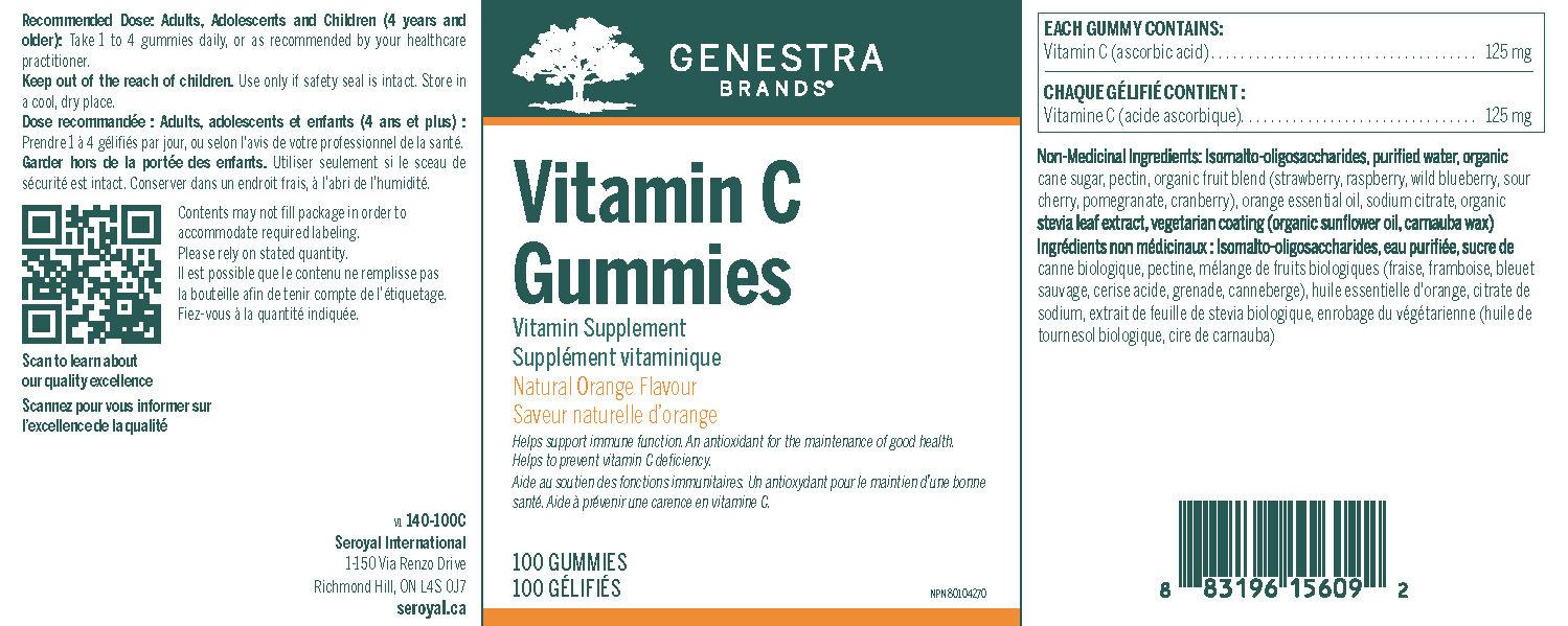 Vitamin C Gummies provide 125 mg of vitamin C (ascorbic acid) per gummy and are suitable for ages 4 and up as a delicious option to help meet daily vitamin C requirements. Vitamin C is an essential nutrient in the body and a cofactor for numerous biosynthetic and gene regulatory enzymes.1 Risk factors for low Vitamin C include lifestyle-related factors such as an unbalanced diet and periods of excessive physical or psychological stress.2,3 Vitamin C is a highly effective antioxidant due to its ability to readily donate electrons, offering protection from damage by oxidants generated during normal cell metabolism and through exposure to toxins and pollutants (e.g. cigarette smoke).4,5 Other benefits of vitamin C include support for wound healing, connective tissue formation, collagen formation and immune health. Vitamin C Gummies are delicious, natural orange flavoured gummies with no artificial flavours or colours, and are low in sugar. With just one delicious gummy daily, this formula helps prevent vitamin C deficiency, provides a source of antioxidants, and supports immune health. Vitamin C Gummies are ideal for anyone 4 years and older who have difficulty or dislike swallowing capsules.